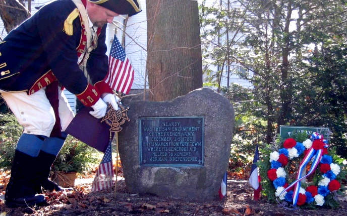 The Color Guard of the Massachusetts SAR placed a wreath at the 1782 campsite of the French Army in Dedham MA.