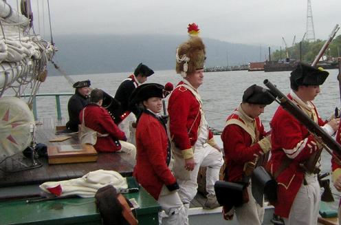 Re-enactors of a French regiment re-created the crossing of the Hudson River in 1781 as the allied troops raced south to trap the British army at Yorktown VA.