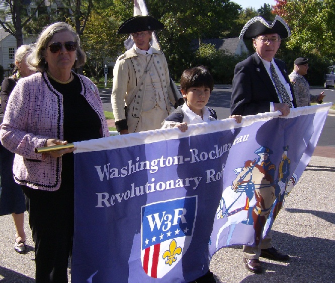 | Members and friends of the W3R®-USA marched in the annual Yorktown Parade on Oct 19, 2008, in Yorktown, Virginia. This helped publicize the new interstate heritage tourism trail to the hundreds of people lining the parade route. Many people requested flyers to bring the information home to their friends. |