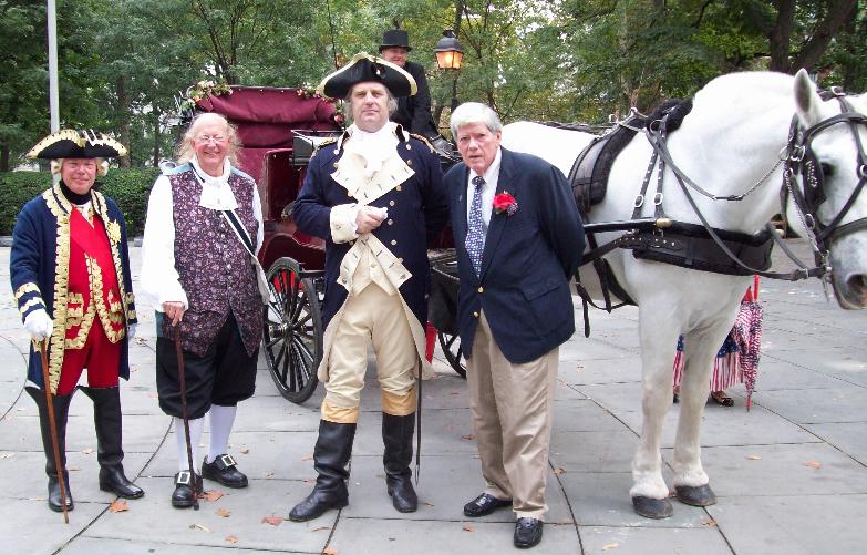 Living historians portraying French General Rochambeau, Benjamin Frankiin, and General Washington spoke at a September event in Philadelphia, arranged by W3R®-PA chair Win Carroll. |