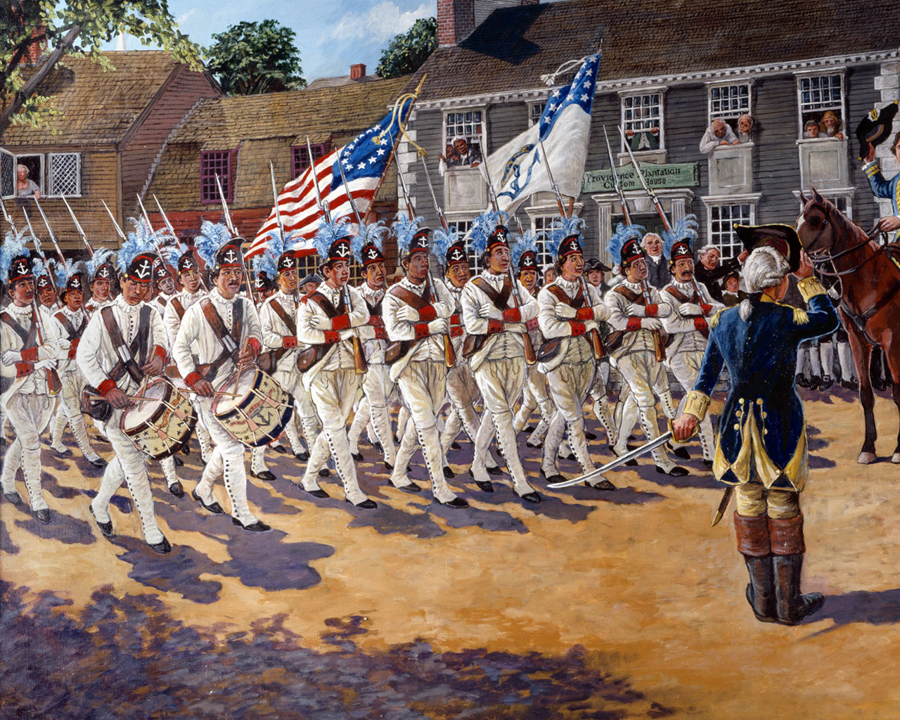 In 1781 June the First Rhode Island Continental Regiment marched from Providence RI along with the French Expeditionary Force on the 680-mile route that ultimately brought them to Yorktown VA.